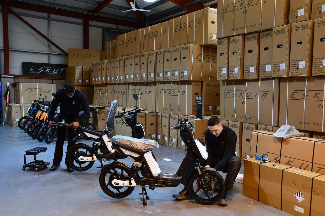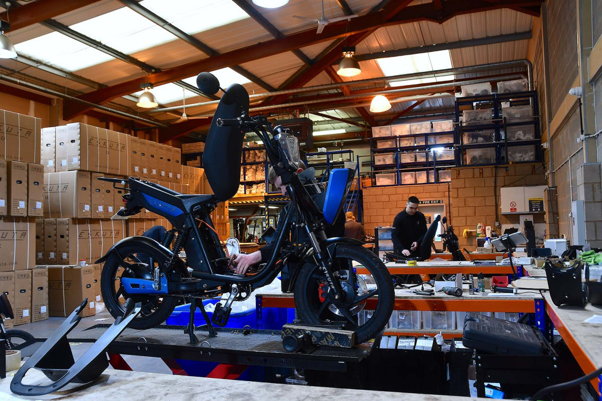 O’Connor’s solution was to import the bikes from China, and then set up an engineering base in Nuneaton. There, Eskuta engineers effectively convert the electric mopeds into e-bikes by fitting pedals to the drivetrain system.