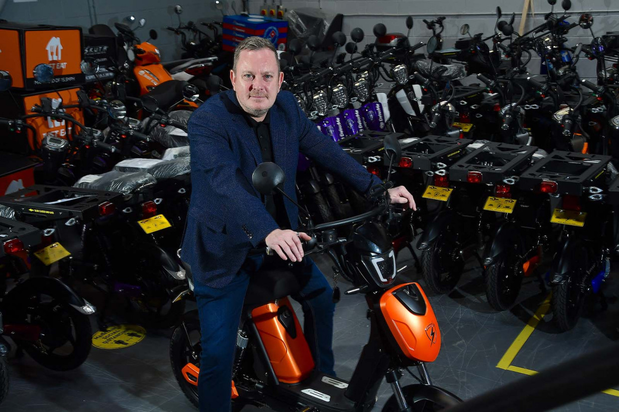 O’Connor says that simplicity has been key to helping scale the business. Noting that some firms introduce new colours of bike each year, O’Connor notes the body of every SX-250 is black – and they can then fit coloured panels. Those can be easily matched to the colours of the firm buying the bikes (O’Connor proudly points to a row of purple-liveried bikes for Birmingham firm DelivrMe, which was colour-matched from a Lamborghini…).