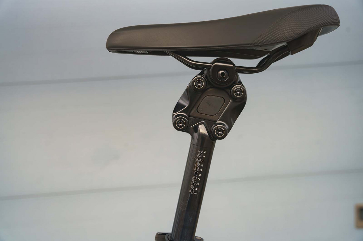 The overall experience is heightened by the suspension – something I wouldn’t normally expect to see on a ‘compact’ bike. A Cane Creek Thudbuster seatpost provides a small amount of relief from the road buzz. I didn’t personally feel much of the effect of it, however, my taller colleague did. Where I did notice a difference was in the Spinner Grind OS fork, which provided about 50mm of travel. It’s not a great deal, but enough to take out the subtle cracks in the average British road.