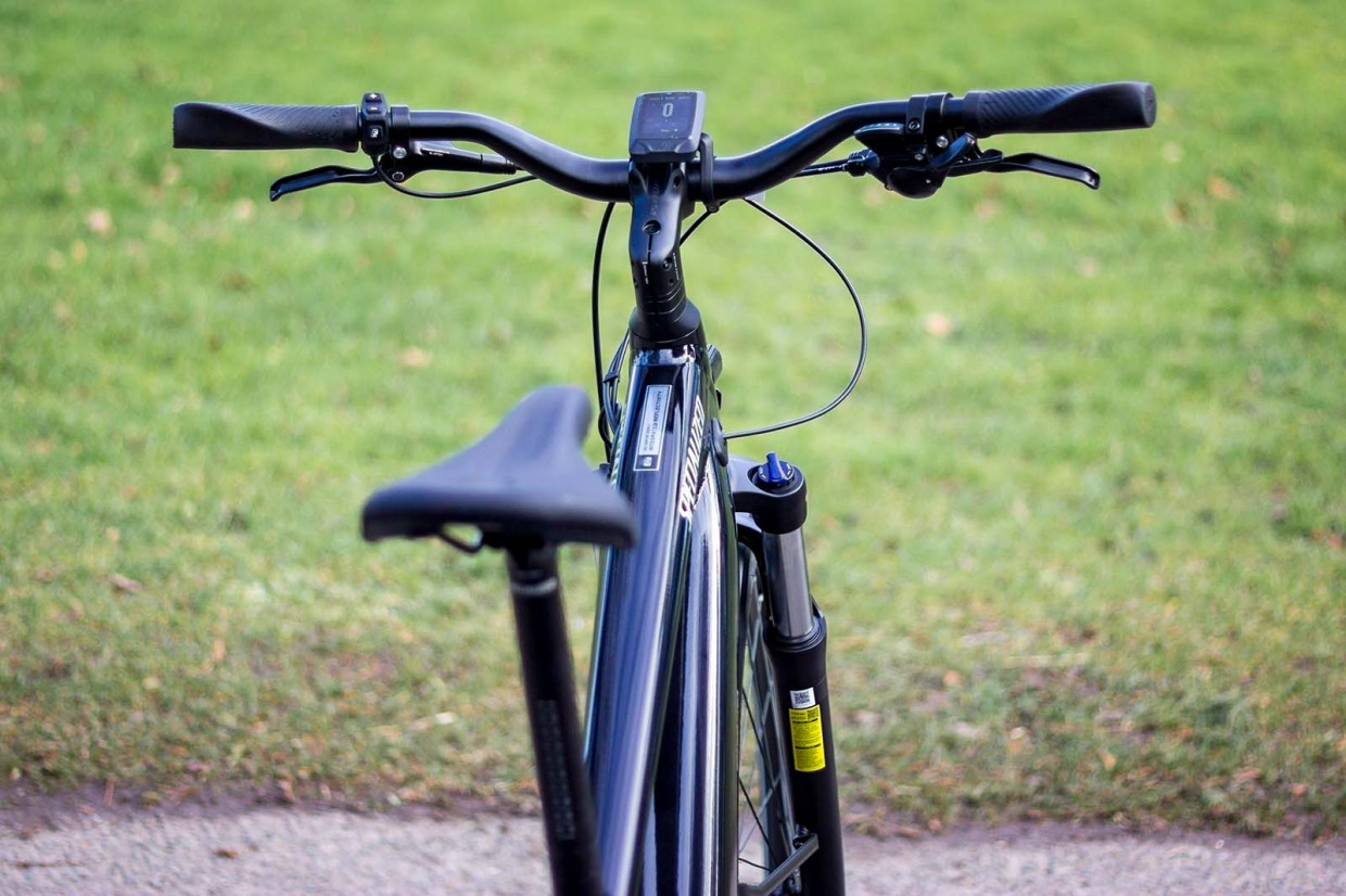 The motor is a proprietary system from Specialized called the Specialized 2.0E. It's mid-drive and provides up to 50Nm of torque which is impressive for an urban bike. The more expensive models have more torque, but I never felt like it was lacking any, particularly for its designed purpose. While I was riding against the various storms we've seen lately, the bike held its own and the only time I heard the motor under any kind of strain was up a steep incline. Otherwise, most of the noise you hear is from the rather wide tyres – although great for bridleway and towpath confidence, I'm not entirely convinced it needed them.