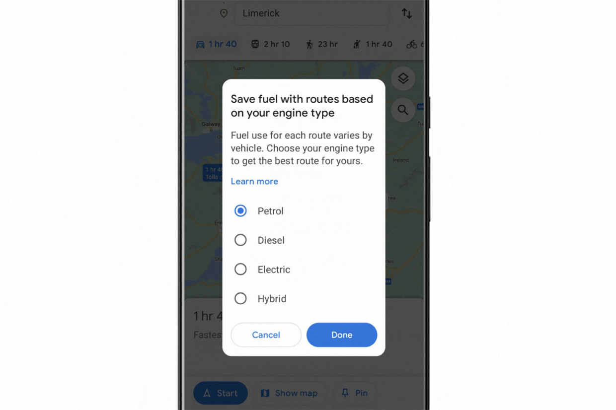 The option to select your powertrain type – with petrol, diesel, hybrid and EV choices – will be added in the coming weeks to optimise the mapping for the different fuel consumption patterns of each car.