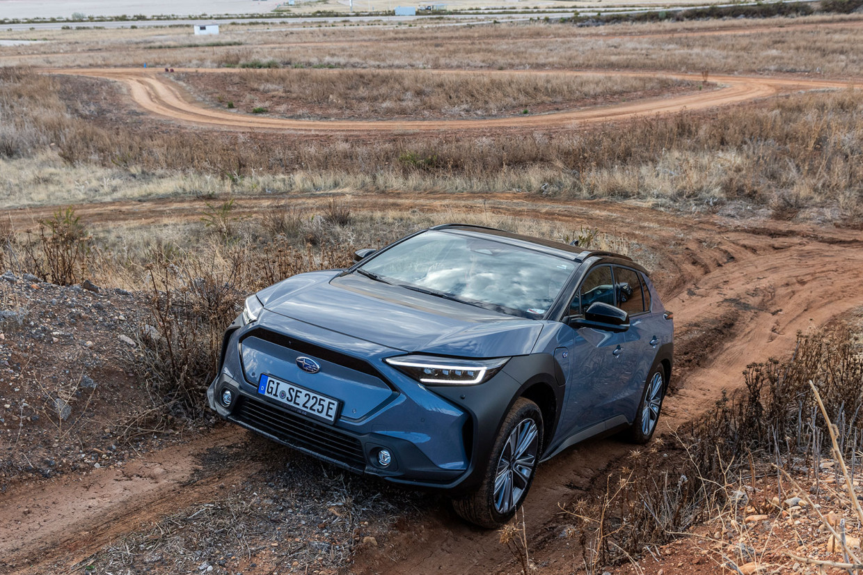 Subaru also tools up the off-road potential of the Solterra, showing those rally days aren’t totally behind it. We had it on a fairly challenging gravel track course, with sharp ascents and descents, as well as a water hazard. All of which were tackled with impressive ease by the Subaru, and all hazards beyond any you’re ever likely to encounter in your ownership. It was another good advert for how well EVs are suited to 4x4 driving thanks to the precise control of each wheel electric motors offer.