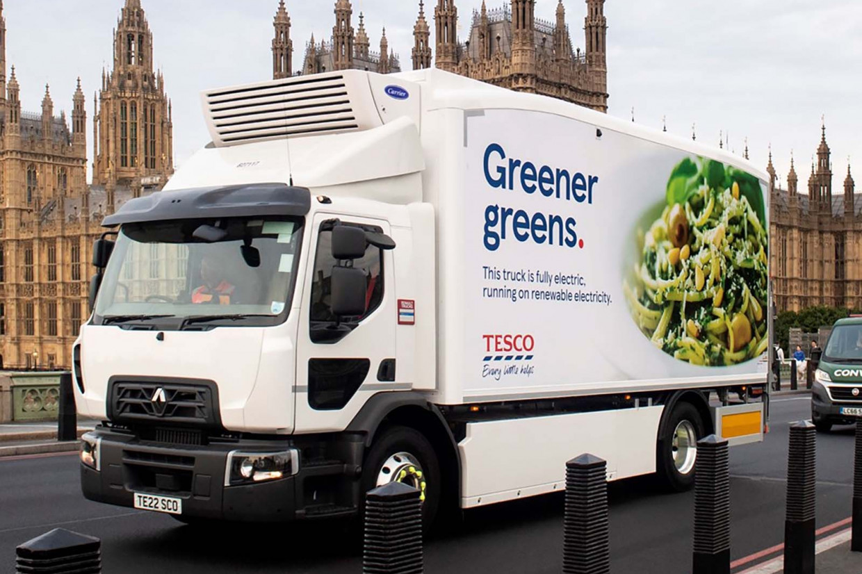 The Renault has a range of up to 130 miles and is able to carry the same payload as the diesel trucks which Tesco previously used.