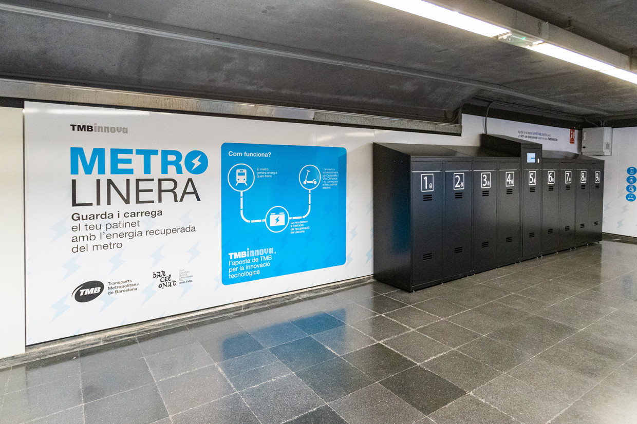 Transports Metropolitans de Barcelona (TMB) is trailing a system where e-scooters can be charged up in special secure lockers at a station. And the energy that powers those lockers comes is recaptured from Metro trains under braking, using a system similar to that featured on electric cars.