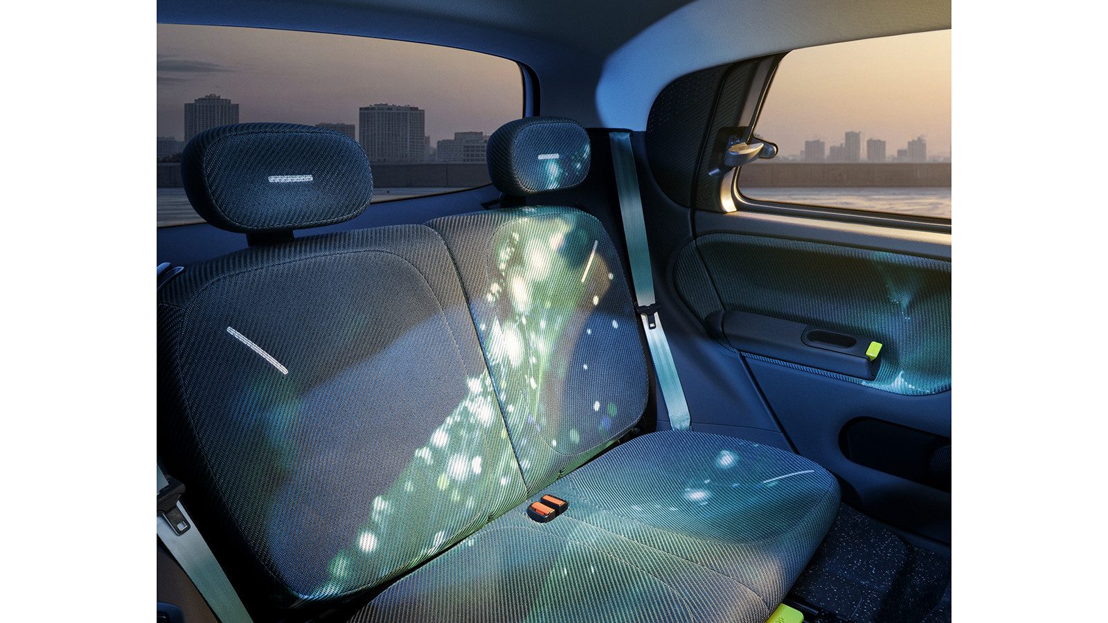 A more subtle nostalgic design cue is the prototype's prominent red hazard light button, a reference to the similarly conspicuous dome-shaped button on top of the old Twingo's dash. In another urban-flavoured 1990s throwback, the front seatbacks are adjusted using skateboard wheels.