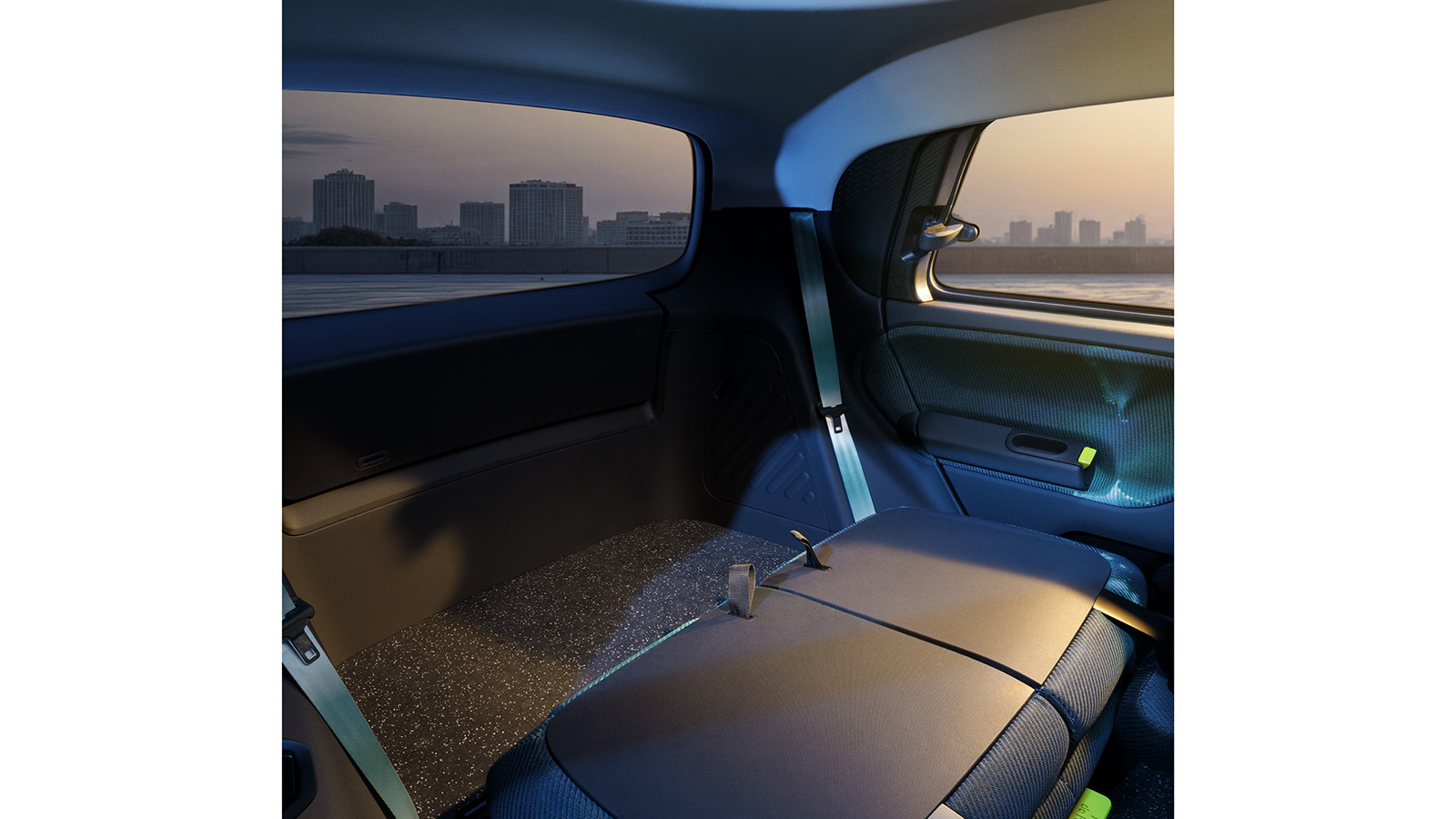 The floor of the Twingo show car is finished in cork, chosen for its durability and resistance, but Renault notes that "show cars are an opportunity to explore and test new ideas", and this is unlikely to make it to customer cars.
