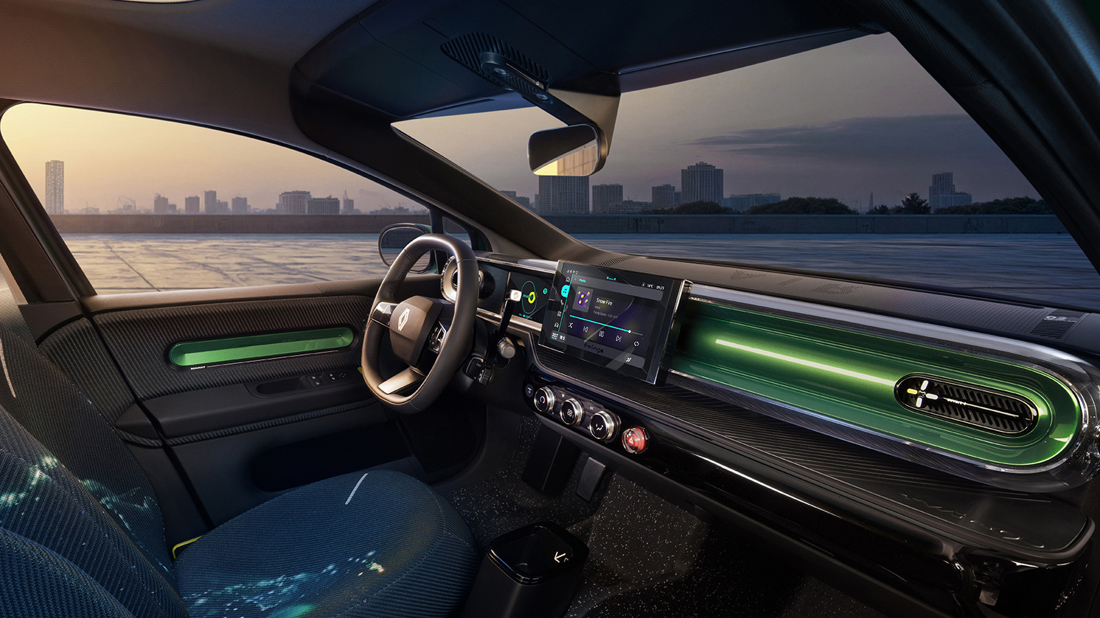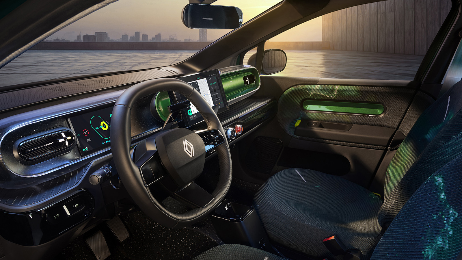 The freshly revealed interior is clearly related to that of Renault's larger EVs – dominated as it is by a 7.0in digital gauge cluster and 10.1in central touchscreen – but makes obvious nods to the cabin of the original Twingo.