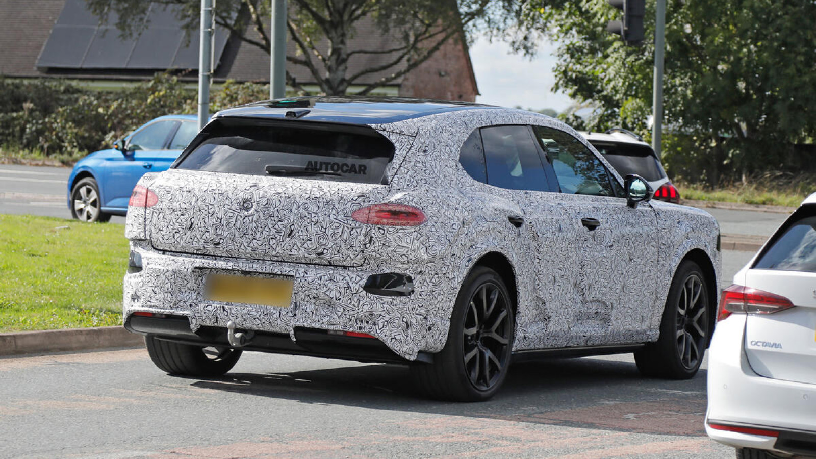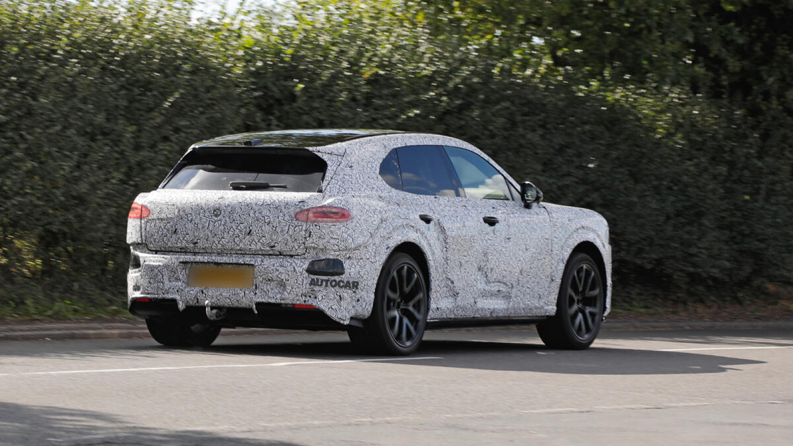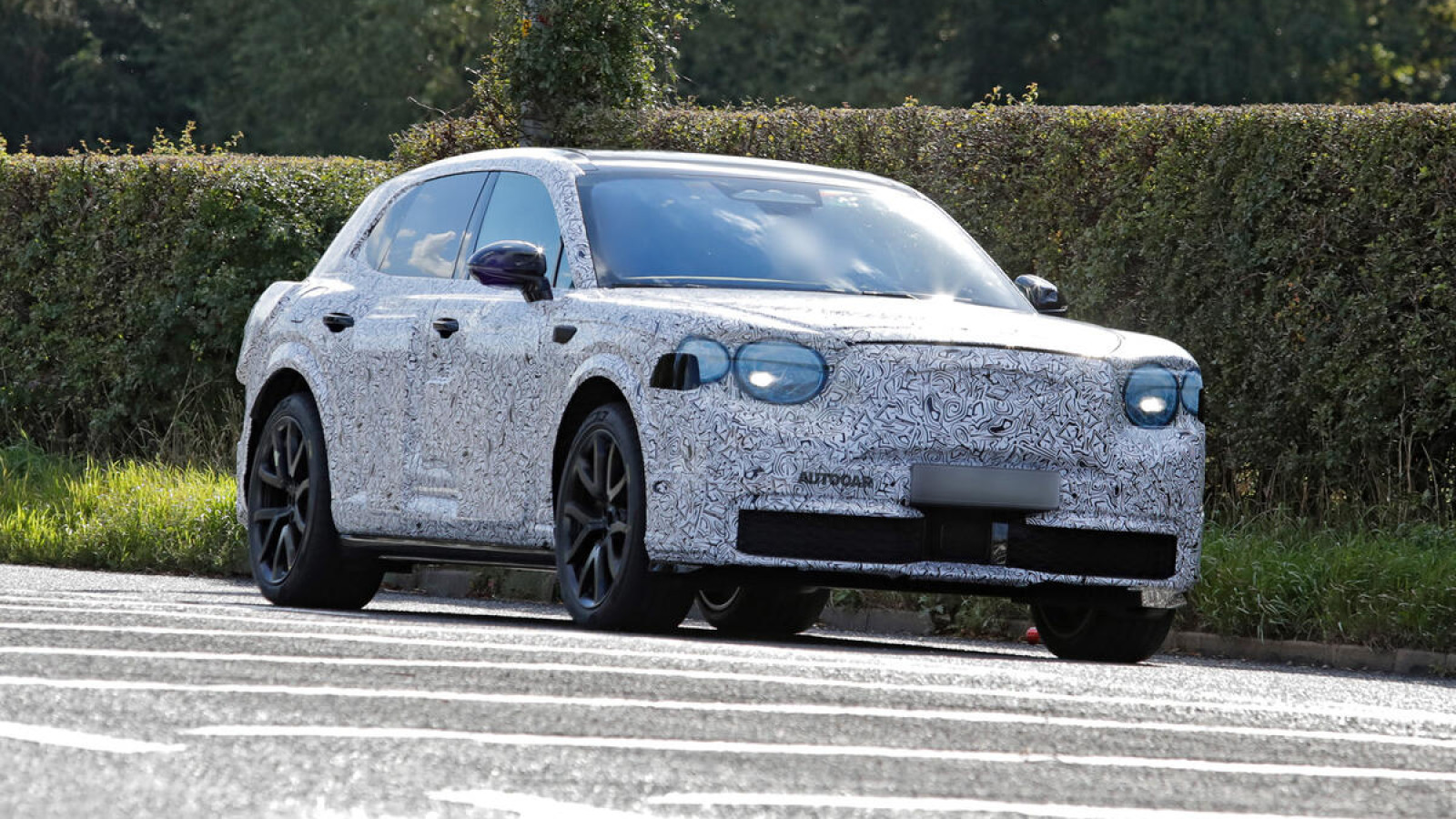 Covered in a design-obscuring, camouflaged exterior livery, the car pictured shows that Bentley’s first EV will be the brand’s second SUV, following the existing petrol Bentley Bentayga.