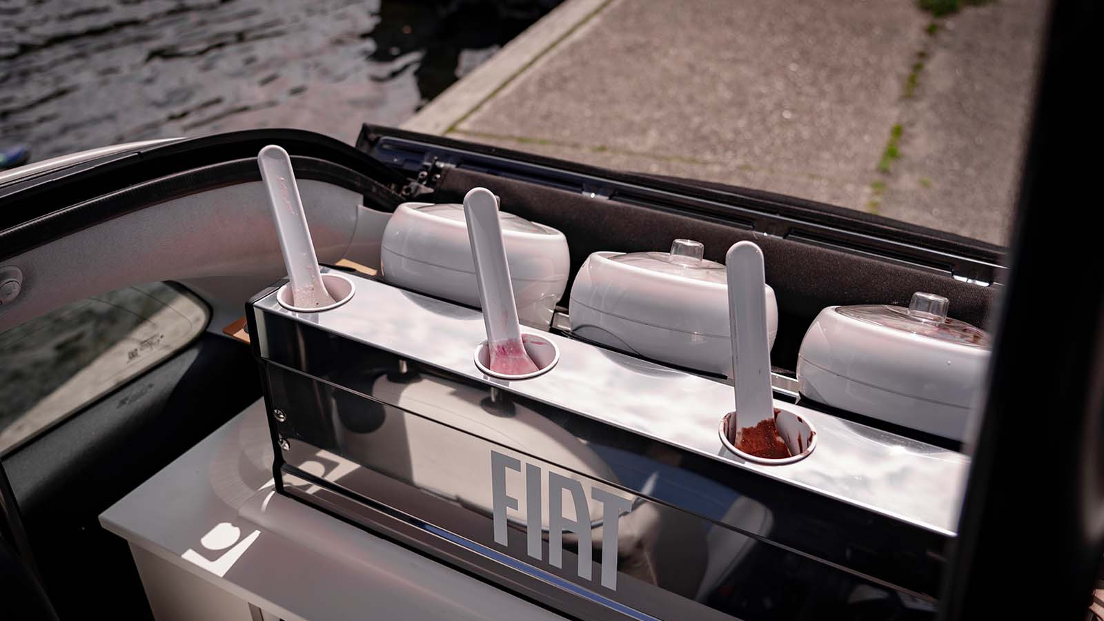 To round off the Gelateria, Fiat has created its own ice cream flavour inspired by the italian hot drink Bicerin, which consists of coffee, chocolate and oat milk.