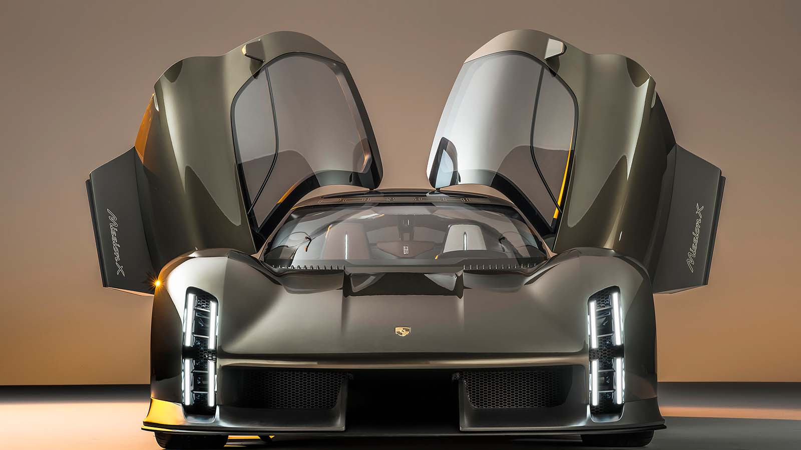 Up front the Mission X gets a reworked version of Porsche's 'four-point' light signature, with the vertical lights inspired by the Porsche 906 and 908 historic racing cars. At the rear, a full-length light unit has been designed to 'float', and features transparent, illuminated Porsche lettering.