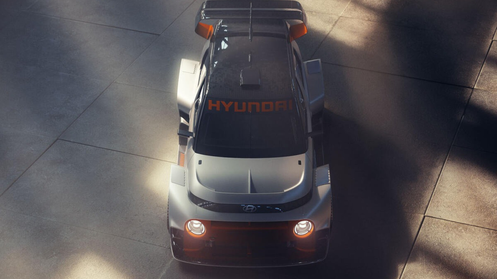 It wears a wide-hipped, box-arched bodykit, a roof scoop and a huge rear wing, mimicking the look of Hyundai’s World Rally Championship machines.