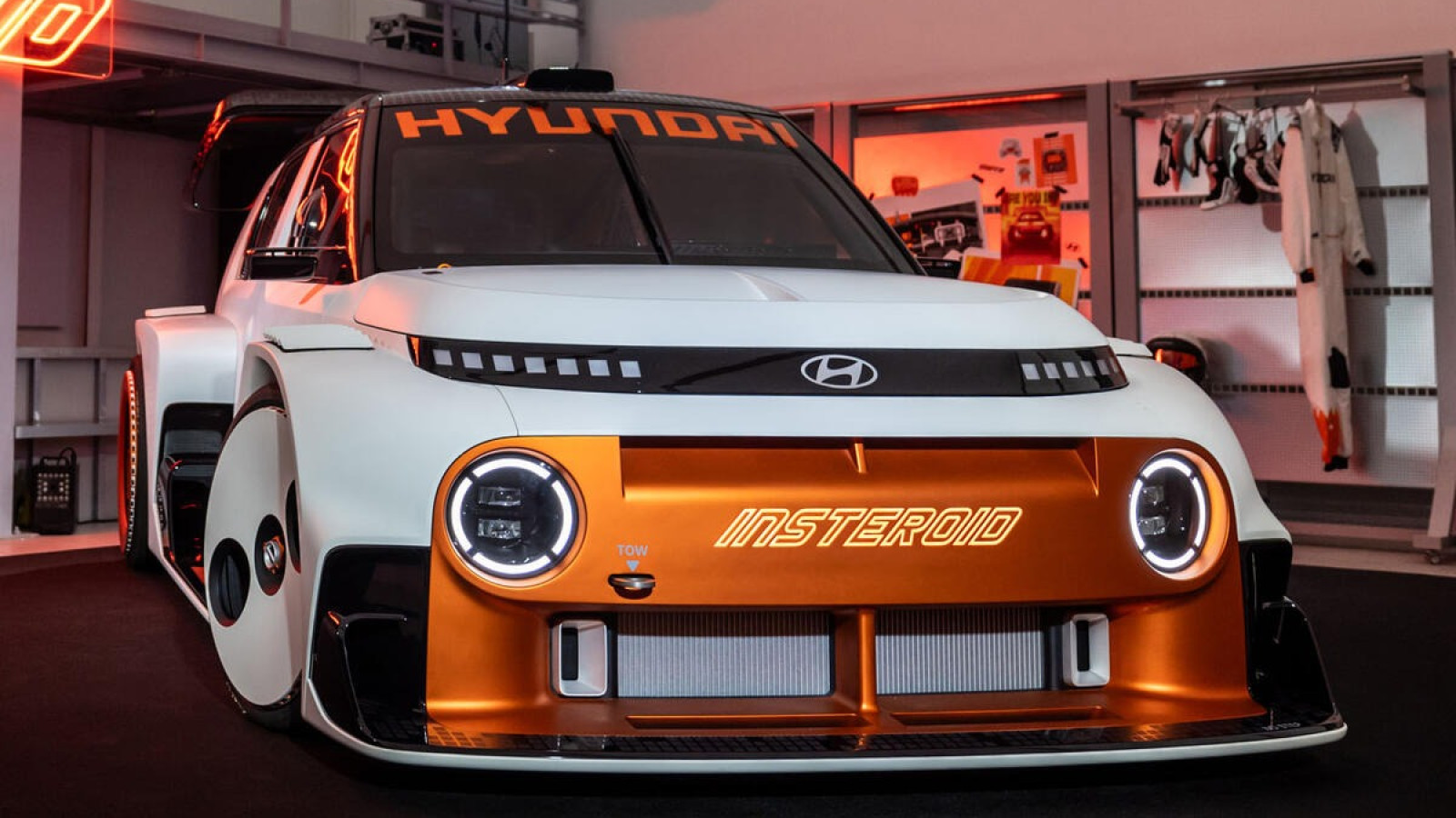 Hyundai has yet to publish technical details for the Insteroid, but the RN24 uses a 480kW (650hp) dual-motor set-up borrowed from the Ioniq 5 N. That allows the 1880kg drift car to dispatch the 0-100km/h (0-62mph) sprint in 3.4sec, while its 84kWh battery yields 447km (278 miles) of range.