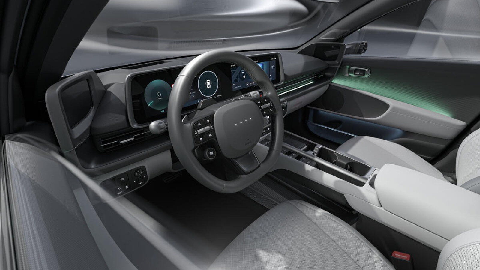 Changes to the cabin are more subtle, but there's a lightly redesigned steering wheel, as seen in the Ioniq 9, and the centre console controls have been rearranged to improve ease of use. New door trim materials and a larger climate control display round off the updates.