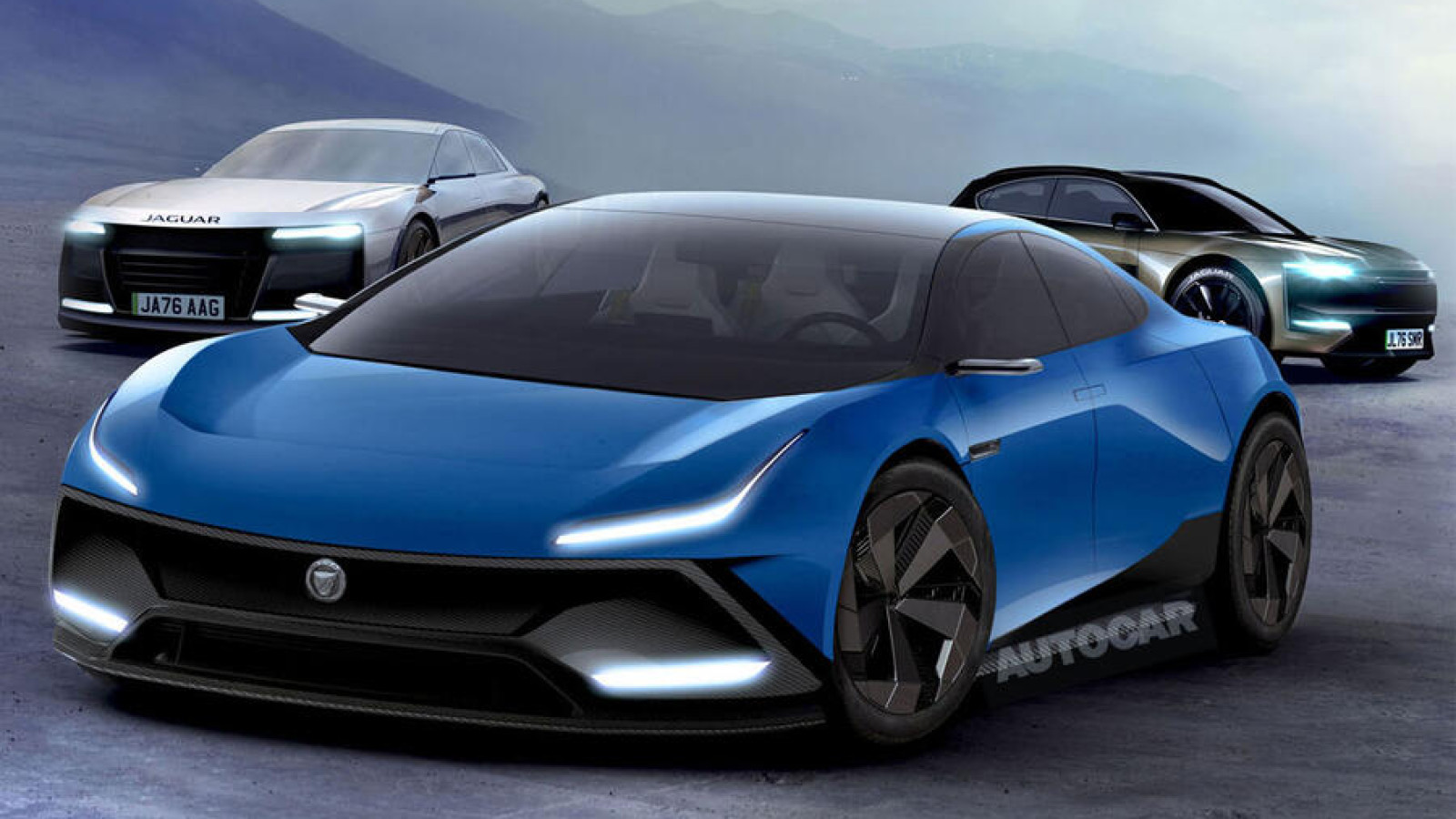 The three cars will have long, probing bonnets and minimalist, imposing front ends that house a distinctive new grille motif envisioned as the new face of the Jaguar brand. Meanwhile, the LED lights at each end will be so slim as to be almost invisible when off, and it is understood the cars will have no rear windows – like the Polestar 4.