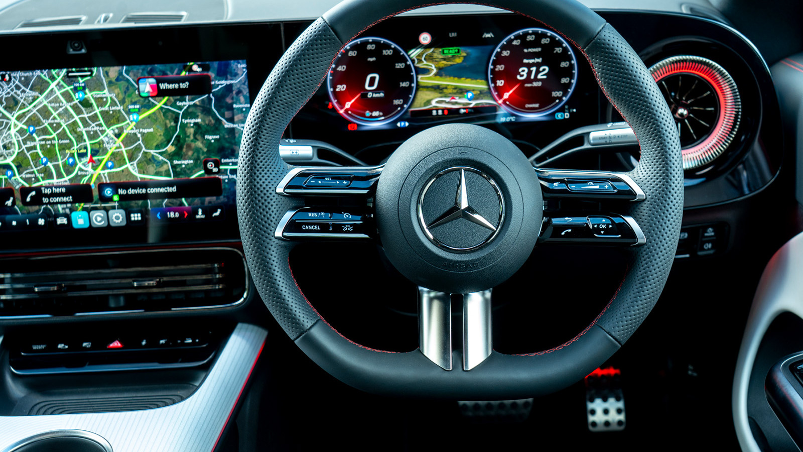 While the infotainment uses new software, it has a familiar look and feel to previous Mercedes systems. Its home screen prominently displays a large map, now enhanced with Google traffic data for improved accuracy.
