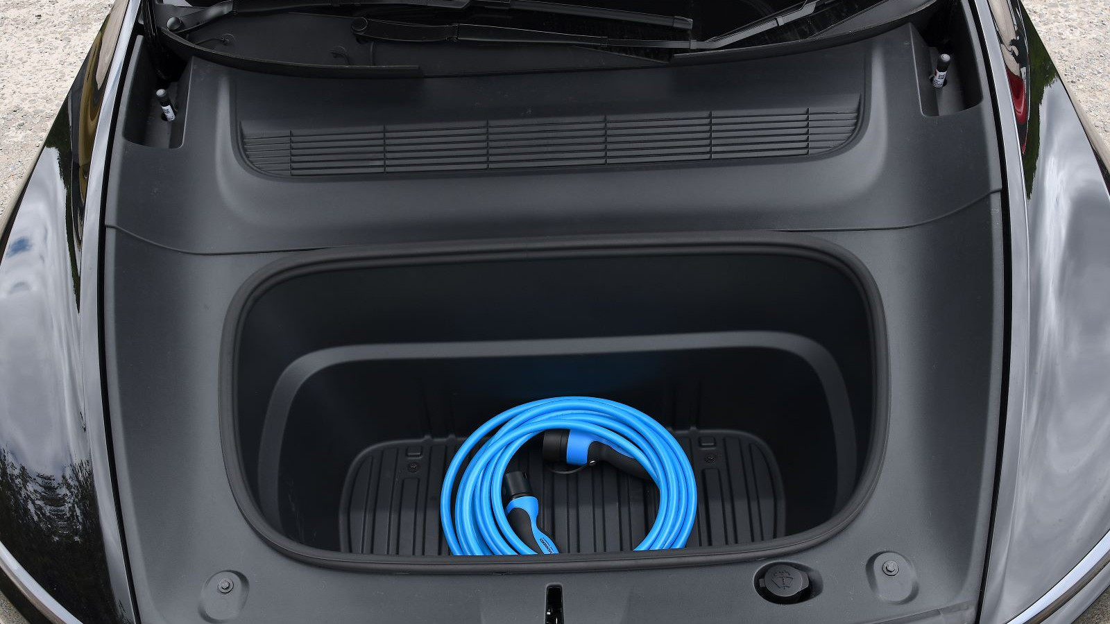 It’s with storage space where the Model Y blows away the competition. The boot is enormous by itself, and that’s before you count the underfloor storage and the big frunk. You can drop the rear seatbacks electronically. A parcel shelf is standard (unlike on early Model Ys), but the way it folds feels home-made. We’d expect a roller cover here.