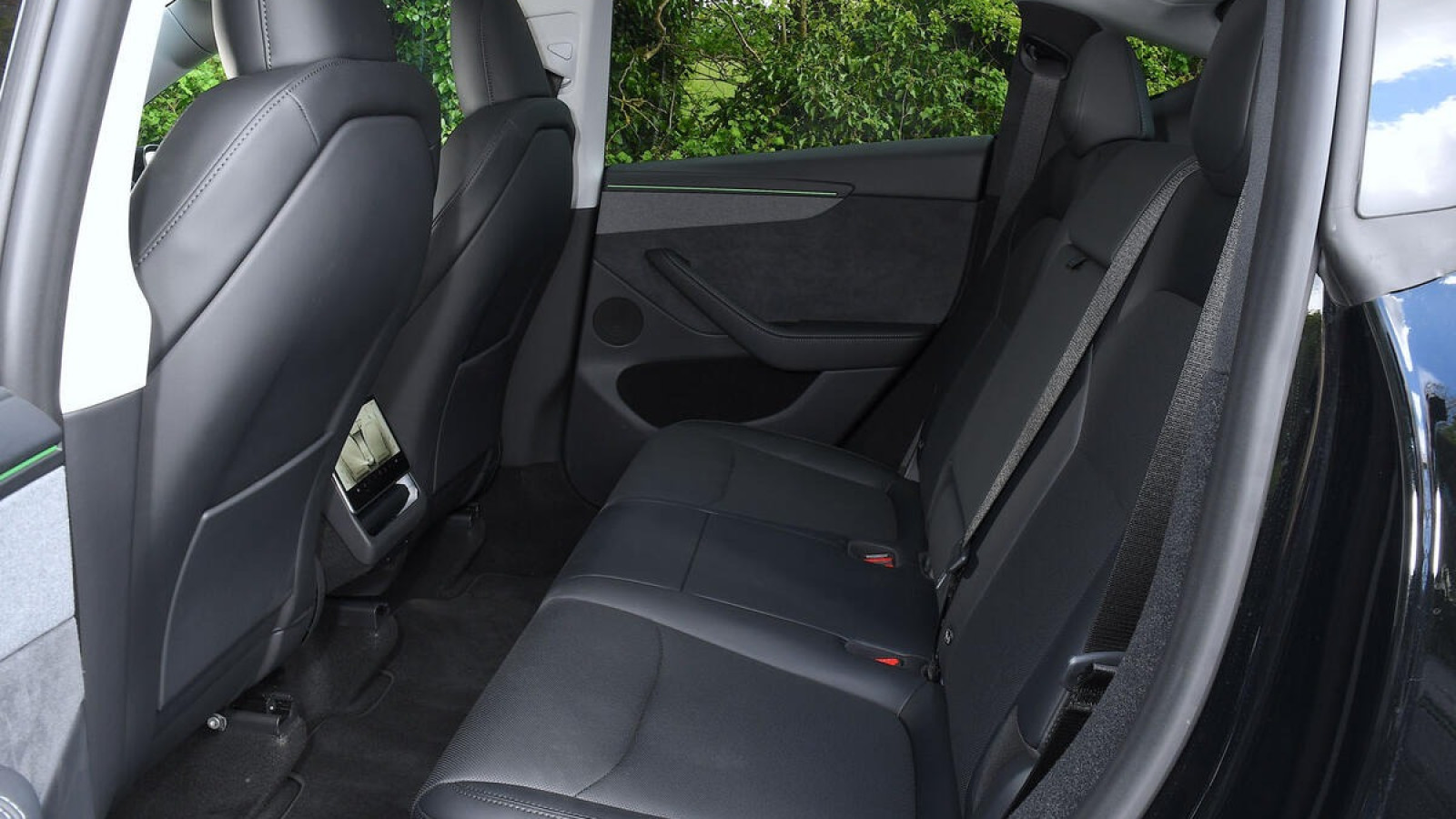 The Model Y doesn’t have class-leading knee- or headroom, but they’re good enough, and because the bench is set fairly high, the seating position is comfortable. The backrest can now also recline electrically.