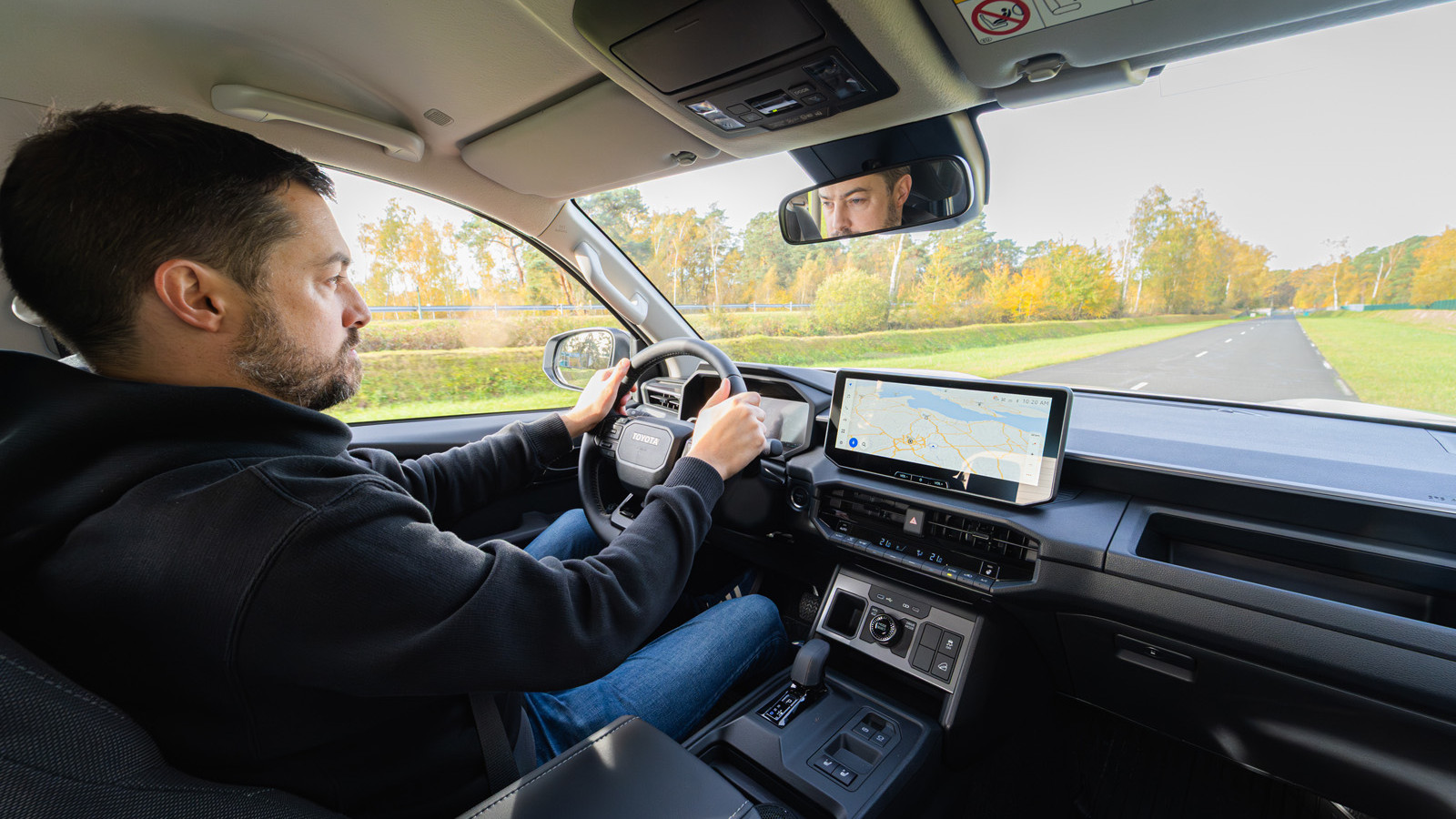 The interior design mirrors the latest Toyota Land Cruiser, though with a simpler aesthetic and durable, functional materials.